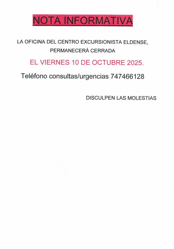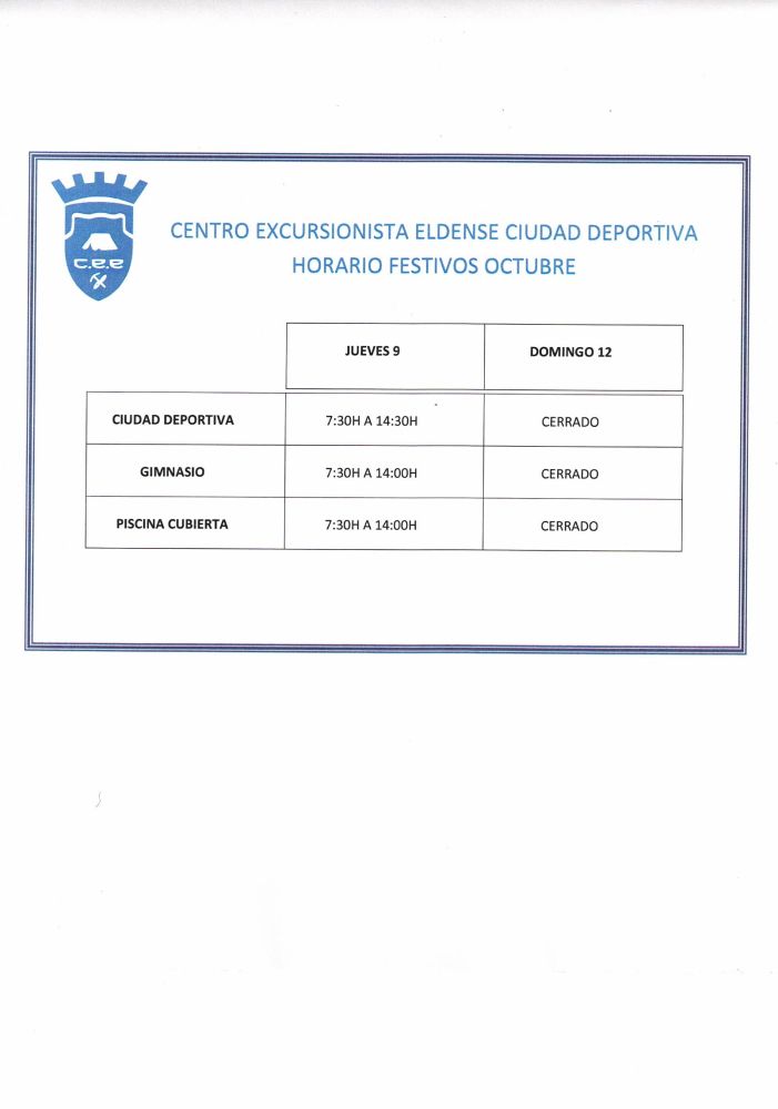 HORARIO FESTIVOS 9 Y 12 DE OCTUBRE