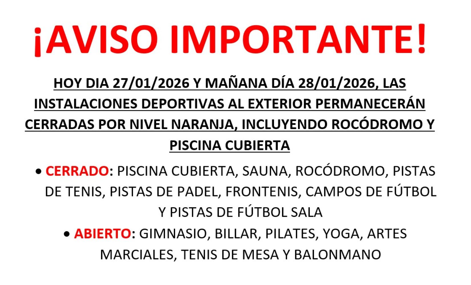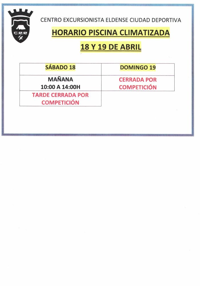 NUEVO HORARIO SABADOS CIUDAD DEPORTIVA